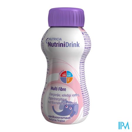 NutriniDrink Multi Fibre aardbeiensmaak is een kant-en-klare, energierijke volledige drinkvoeding met vezels voor kinderen vanaf 1 jaar.