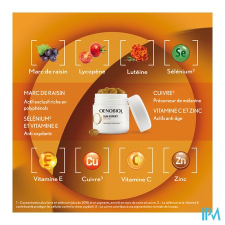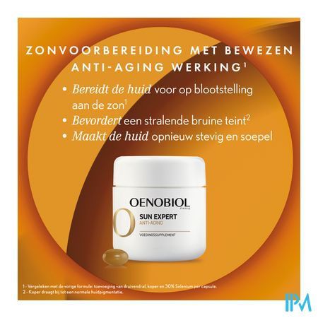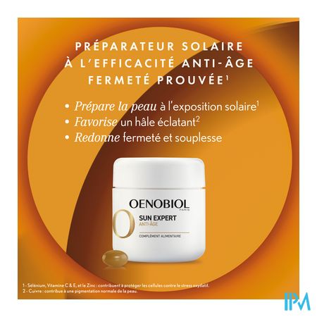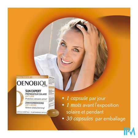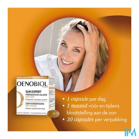 Oenobiol Sun Expert A/age Caps 2x30 is een voedingssupplement, verkrijgbaar in uw buurtapotheek of online apotheek. Neem niet meer dan de aanbevolen dagelijkse dosis vermeld op de verpakking. Het vervangt geen gezonde levensstijl en gevarieerde en evenwichtige voeding. Vraag raad aan uw apotheker. Het product altijd buiten het bereik van kinderen houden.