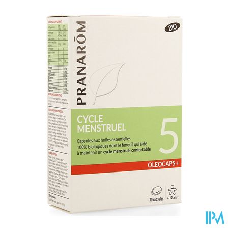 Elke vrouw heeft soms last van ongemakken als gevolg van de menstruele cyclus: krampen, misselijkheid, lichtgeraaktheid, stemmingswisselingen...; deze onaangenaamheden kunnen soms grote gevolgen hebben voor vrouwen en hun dagelijkse bezigheden in de weg staan. De essentiële oliën van Lavendel, Venkel, Kardemom, Gember, Pepermunt, Citroengras en Eucalyptus Globulus in de Oléocaps+ 5 BIO capsules verzachten onaangename buikkrampen en zorgen voor een mentaal evenwicht tijdens en vóór de menstruatie.