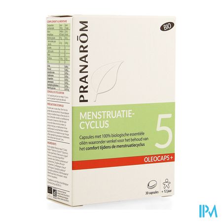 Oleocaps+ Bio 5 Menstruatie Caps 30 is een voedingssupplement, verkrijgbaar in uw buurtapotheek of online apotheek. Neem niet meer dan de aanbevolen dagelijkse dosis vermeld op de verpakking. Het vervangt geen gezonde levensstijl en gevarieerde en evenwichtige voeding. Vraag raad aan uw apotheker. Het product altijd buiten het bereik van kinderen houden.