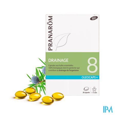 Capsules met 100% biologische essentiële oliën waaronder jeneverbes die bijdraagt tot drainage van het organisme
