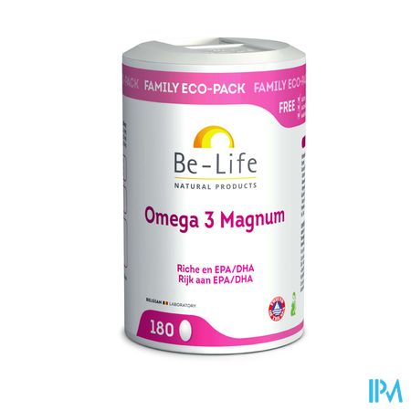 Omega 3 Magnum Be Life Caps 180 is een voedingssupplement, verkrijgbaar in uw buurtapotheek of online apotheek. Neem niet meer dan de aanbevolen dagelijkse dosis vermeld op de verpakking. Het vervangt geen gezonde levensstijl en gevarieerde en evenwichtige voeding. Vraag raad aan uw apotheker. Het product altijd buiten het bereik van kinderen houden.