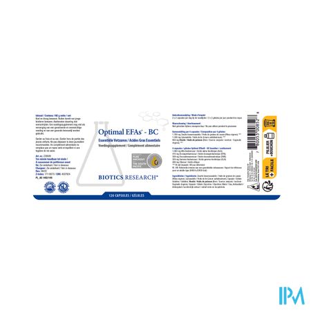 Optimal Efas-bc Caps 120 is een voedingssupplement, verkrijgbaar in uw buurtapotheek of online apotheek. Neem niet meer dan de aanbevolen dagelijkse dosis vermeld op de verpakking. Het vervangt geen gezonde levensstijl en gevarieerde en evenwichtige voeding. Vraag raad aan uw apotheker. Het product altijd buiten het bereik van kinderen houden.