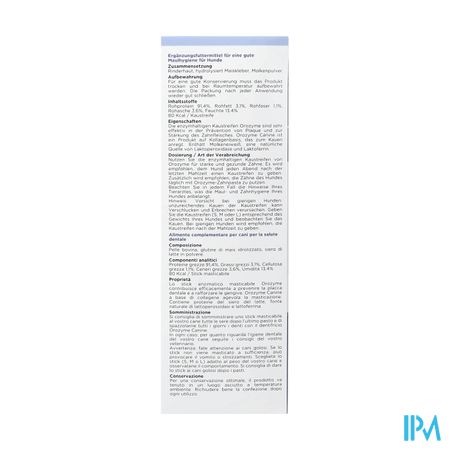Orozyme Canine enzymatische kauwstrips bevatten collageen dat de natuurlijke kauwarbeid bij honden stimuleert. Het kauwen draagt bij aan de gebitsverzorging. Orozyme Canine Kauwstrips kalmeren tevens geïrriteerd tandvlees. U kunt de kauwstrips als traktatie aan uw hond geven.