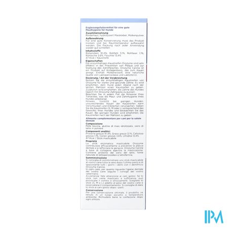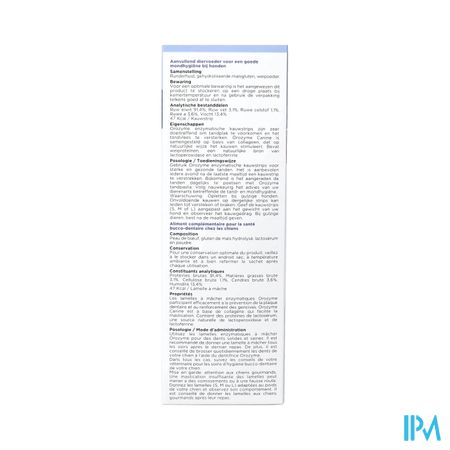Orozyme Canine enzymatische kauwstrips bevatten collageen dat de natuurlijke kauwarbeid bij honden stimuleert. Het kauwen draagt bij aan de gebitsverzorging. Orozyme Canine Kauwstrips kalmeren tevens geïrriteerd tandvlees. U kunt de kauwstrips als traktatie aan uw hond geven.