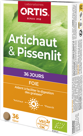 Ortis Artisjok-paardebloem Bio Comp 2x18 is een voedingssupplement, verkrijgbaar in uw buurtapotheek of online apotheek. Neem niet meer dan de aanbevolen dagelijkse dosis vermeld op de verpakking. Het vervangt geen gezonde levensstijl en gevarieerde en evenwichtige voeding. Vraag raad aan uw apotheker. Het product altijd buiten het bereik van kinderen houden.