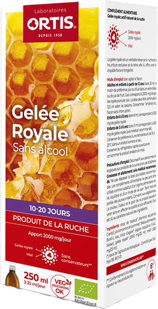 Kinderen van 3 tot 6 jaar: 3 ml opdrinken, dit stemt overeen met 250 mg koninginnebrij (medisch advies aanbevolen). De volledige fles gebruiken zonder onderbreking. Na opening koel te bewaren en binnen de maand te gebruiken. Er wordt aangeraden om de aanbevolen dagelijkse hoeveelheid niet te overschrijden. Afgeraden in geval van astma of een allergie aan bijenproducten. Voedingssupplementen mogen niet worden gebruikt ter vervanging van een gevarieerde en evenwichtige voeding noch van een gezonde levensstijl. Buiten het bereik van jonge kinderen houden. Omwille van het gebruik van natuurlijke ingrediënten, kunnen de kleur, geur en smaak van dit product variaties vertonen. Dit heeft echter geen invloed op de kwaliteit noch op de werkzaamheid.