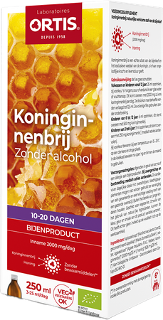 Ortis Koninginnebrij Bio 250ml is een voedingssupplement, verkrijgbaar in uw buurtapotheek of online apotheek. Neem niet meer dan de aanbevolen dagelijkse dosis vermeld op de verpakking. Het vervangt geen gezonde levensstijl en gevarieerde en evenwichtige voeding. Vraag raad aan uw apotheker. Het product altijd buiten het bereik van kinderen houden.