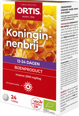 Ortis Koninginnebrij Bio Kauwtabletten 24 is een voedingssupplement, verkrijgbaar in uw buurtapotheek of online apotheek. Neem niet meer dan de aanbevolen dagelijkse dosis vermeld op de verpakking. Het vervangt geen gezonde levensstijl en gevarieerde en evenwichtige voeding. Vraag raad aan uw apotheker. Het product altijd buiten het bereik van kinderen houden.