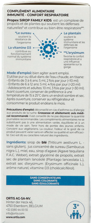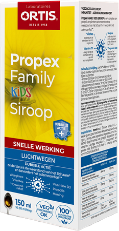 Ortis Propex Family Kids Siroop 150ml is een voedingssupplement, verkrijgbaar in uw buurtapotheek of online apotheek. Neem niet meer dan de aanbevolen dagelijkse dosis vermeld op de verpakking. Het vervangt geen gezonde levensstijl en gevarieerde en evenwichtige voeding. Vraag raad aan uw apotheker. Het product altijd buiten het bereik van kinderen houden.