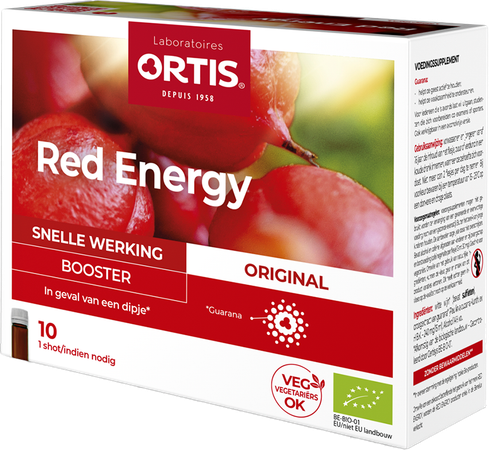 Ortis Red Energy Bio Alc 10x15ml is een voedingssupplement, verkrijgbaar in uw buurtapotheek of online apotheek. Neem niet meer dan de aanbevolen dagelijkse dosis vermeld op de verpakking. Het vervangt geen gezonde levensstijl en gevarieerde en evenwichtige voeding. Vraag raad aan uw apotheker. Het product altijd buiten het bereik van kinderen houden.