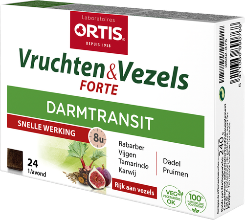 Ortis Vruchten & Vezels Forte Blokje 24 is een voedingssupplement, verkrijgbaar in uw buurtapotheek of online apotheek. Neem niet meer dan de aanbevolen dagelijkse dosis vermeld op de verpakking. Het vervangt geen gezonde levensstijl en gevarieerde en evenwichtige voeding. Vraag raad aan uw apotheker. Het product altijd buiten het bereik van kinderen houden.