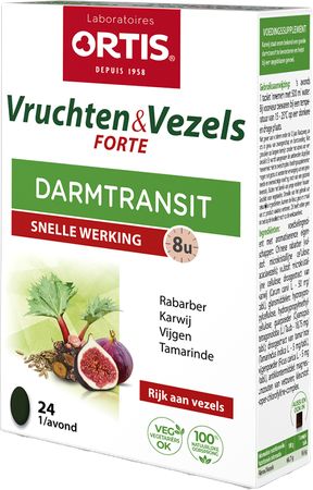 Ortis Vruchten & Vezels Forte Comp 24 is een voedingssupplement, verkrijgbaar in uw buurtapotheek of online apotheek. Neem niet meer dan de aanbevolen dagelijkse dosis vermeld op de verpakking. Het vervangt geen gezonde levensstijl en gevarieerde en evenwichtige voeding. Vraag raad aan uw apotheker. Het product altijd buiten het bereik van kinderen houden.