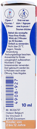 Kinderen van 6 tot en met 12 jaar: Onder toezicht van de ouders. 1 tot 2 verstuivingen in elk neusgat, 2 tot 3 maal per dag. De tijdsduur tussen 2 toedieningen dient 8 tot 10 uur te bedragen. Gebruik niet meer dan 3 toedieningen per neusgat, per dag. De laatste toediening kan voor het slapengaan gebeuren.