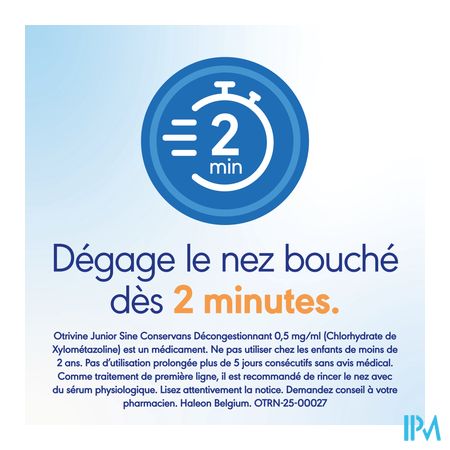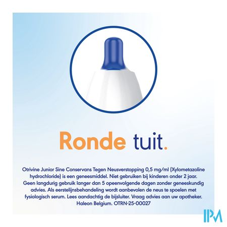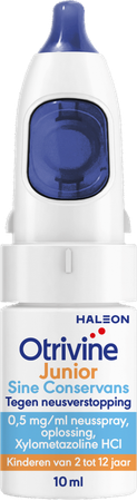 Otrivine maakt deel uit van de groep geneesmiddelen gebruikt bij de behandeling van de symptomen van neusverstopping. Otrivine 0,5 mg/ml is aangewezen bij kinderen van 2 tot 12 jaar. Behandeling max 3 à 5 dagen van de symptomen van neusverstopping bij bepaalde aandoeningen zoals: neusverkoudheid (niet-allergische rhinitis (=ontsteking van het neusslijmvlies)), hooikoorts en allergische rhinitis door bijvoorbeeld stof en schimmels, sinusitis (bevordert de uitscheiding van slijmen), ontstekingen van het middenoor. Het effect van Otrivine is waarneembaar binnen 2 minuten en duurt tot 10 uren. Als eerstelijnsbehandeling, is het aangeraden om de neus te spoelen met een fysiologisch serum. Otrivine mag gebruikt worden als tweedelijnsbehandeling. Zoals alle neuspreparaten met een vaatvernauwende stof, mag Otrivine niet als onderhoudsbehandeling gebruikt worden. Wordt de klacht na 5 dagen niet minder, of wordt hij zelfs erger? Neem dan contact op met uw arts.
