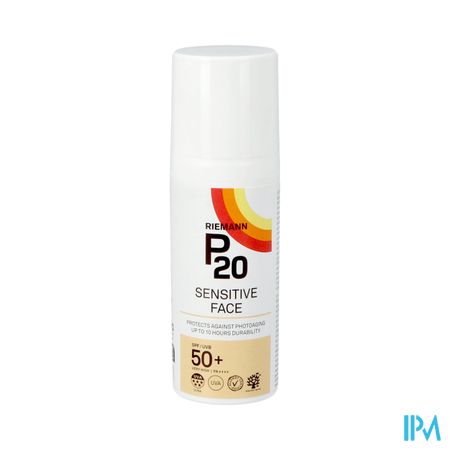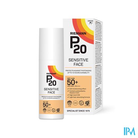 P20 Sensitive Face IP50+ is een zonnecrème met een lichte textuur, speciaal ontwikkeld voor het gezicht en de hals. De crème helpt de huid te beschermen tegen door de zon veroorzaakte veroudering (fotoveroudering) en is geschikt voor de gevoelige huid. Sensitive face bevat Triple Protection technologie die tot 10 uur bescherming biedt en een hoge UVA-bescherming bevat. De crème is dermatologisch getest voor de gevoelige huid, bevat geen parfum en is veganistisch.