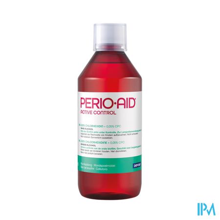 Perio.Aid Active Control Mondspoelmiddel 0,05% is zeer geschikt voor de langdurige ondersteuning van de mondhygiëne bij tandvleesaandoeningen of tijdens en na tandheelkundige ingrepen, zoals flap-operaties en plaatsen van implantaten. Perio.Aid Active Control bevat 0,05% Chloorhexidine dat antibacterieel werkt en ontstekingen in de mond helpt te bestrijden en te voorkomen.