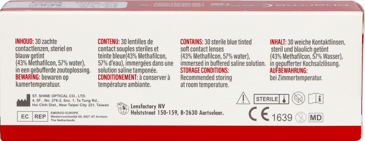 Zachte contactlenzen, steriel en blauw getint.