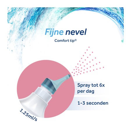 Spray 1-3 seconden per neusholte. 4 tot 6 keer per dag voor de behandeling van neusklachten. 1 tot 2 keer per dag voor dagelijkse hygiëne. Spoel de verstuiver schoon vóór het eerste gebruik.