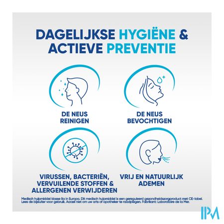 - Oplossing van 100 % natuurlijk, niet-verdund en isotoon zeewater (equivalent aan 9 g/l NaCl)