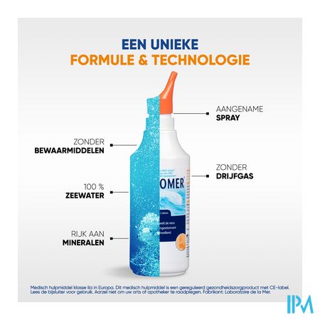 - De hoge zoutconcentratie (equivalent aan 22 g/l van de totale minerale zouten) in PHYSIOMER® Sinus Spray verwijdert overtollig vocht uit de neusslijmvliezen waardoor de neus ontzwelt en een verstopte neus verlicht.