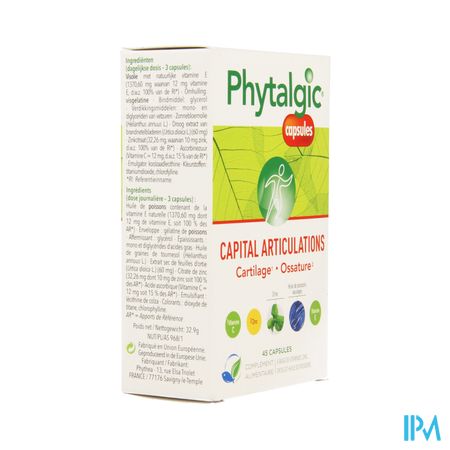Phytalgic Caps 3x15 is een voedingssupplement, verkrijgbaar in uw buurtapotheek of online apotheek. Neem niet meer dan de aanbevolen dagelijkse dosis vermeld op de verpakking. Het vervangt geen gezonde levensstijl en gevarieerde en evenwichtige voeding. Vraag raad aan uw apotheker. Het product altijd buiten het bereik van kinderen houden.
