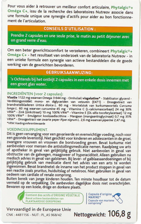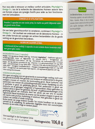 Om u te helpen uw gewrichten weer comfortabeler te maken, combineert Phytalgic®+ Omega C+, het resultaat van onderzoek door Nutreov laboratoria, een synergie van actieve ingrediënten in een unieke formule om de goede werking van het gewricht te bevorderen: