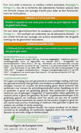 Phytalgic Omega C + Bt60 Caps 60 is een voedingssupplement, verkrijgbaar in uw buurtapotheek of online apotheek. Neem niet meer dan de aanbevolen dagelijkse dosis vermeld op de verpakking. Het vervangt geen gezonde levensstijl en gevarieerde en evenwichtige voeding. Vraag raad aan uw apotheker. Het product altijd buiten het bereik van kinderen houden.