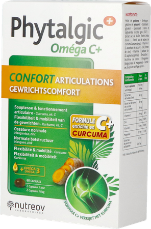 Om u te helpen uw gewrichten weer comfortabeler te maken, combineert Phytalgic®+ Omega C+, het resultaat van onderzoek door Nutreov laboratoria, een synergie van actieve ingrediënten in een unieke formule om de goede werking van het gewricht te bevorderen: