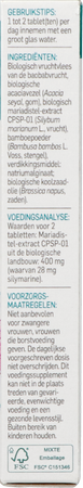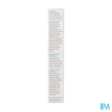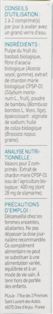 Biologische baobabvruchtenpulp (Adansonia digitata L.), biologische acaciavezel, biologisch mariadistelextract CPSP-01 (Silybum marianum L., fruit), bamboepoeder (Bambusa bambos L. Voss, exudaat), verdikkingsmiddel: natriumalginaat; biologische raapzaadolie.