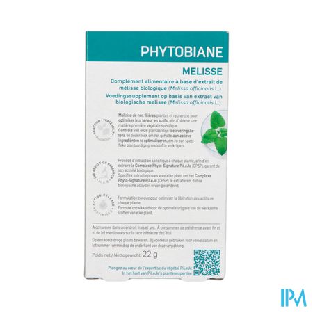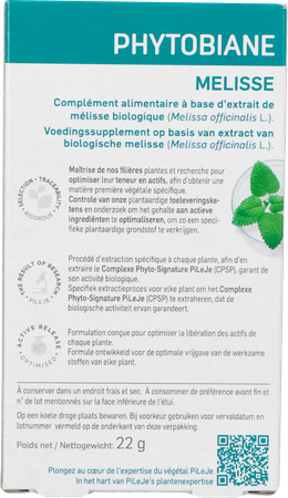 Phytobiane Melisse Tabl 30 is een voedingssupplement, verkrijgbaar in uw buurtapotheek of online apotheek. Neem niet meer dan de aanbevolen dagelijkse dosis vermeld op de verpakking. Het vervangt geen gezonde levensstijl en gevarieerde en evenwichtige voeding. Vraag raad aan uw apotheker. Het product altijd buiten het bereik van kinderen houden.