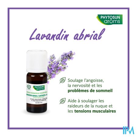 Phytosun Lavendel abrialis BIO 10 MLHelpt o.a.: •Angsten, nervositeit en slaapproblemen te verlichten•Krampen, stijve nek en spierspanningen na een fysieke inspanning te verzachten