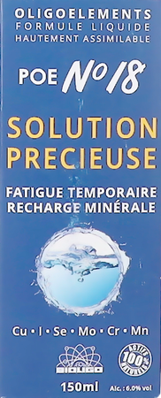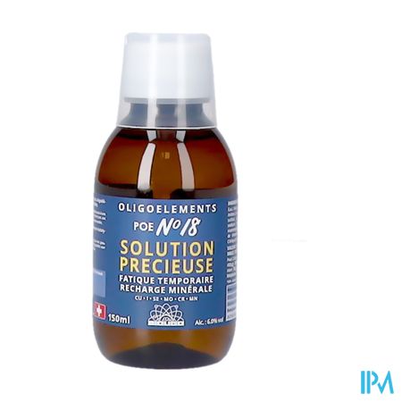 Poe N 18 Kostbare Oplossing 150ml is een voedingssupplement, verkrijgbaar in uw buurtapotheek of online apotheek. Neem niet meer dan de aanbevolen dagelijkse dosis vermeld op de verpakking. Het vervangt geen gezonde levensstijl en gevarieerde en evenwichtige voeding. Vraag raad aan uw apotheker. Het product altijd buiten het bereik van kinderen houden.