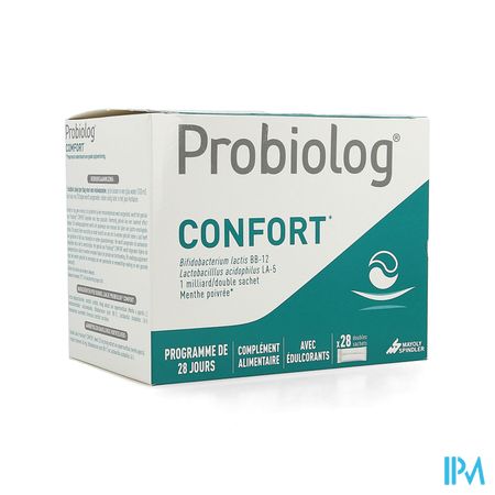 Probiolog Confort Dubbele Zakje 28 is een voedingssupplement, verkrijgbaar in uw buurtapotheek of online apotheek. Neem niet meer dan de aanbevolen dagelijkse dosis vermeld op de verpakking. Het vervangt geen gezonde levensstijl en gevarieerde en evenwichtige voeding. Vraag raad aan uw apotheker. Het product altijd buiten het bereik van kinderen houden.