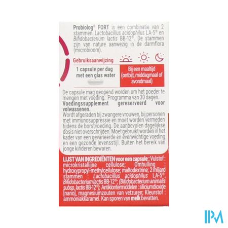 van het antibioticum minstens 2 uur te wachten alvorens u de capsule Probiolog® FORT inneemt.