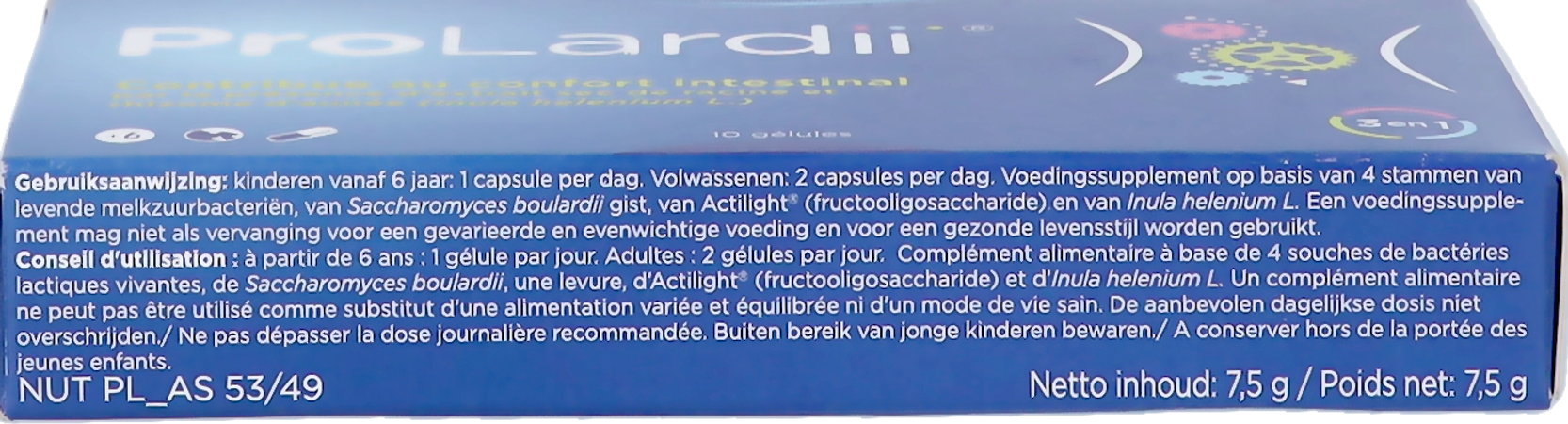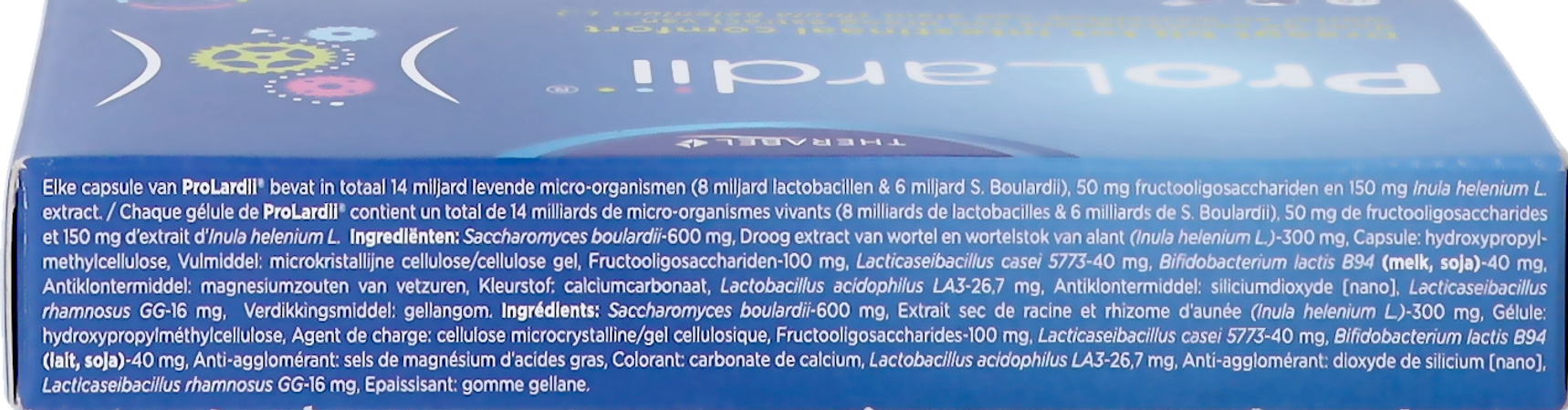 Elke capsule van ProLardii® bevat in totaal 14 miljard levende micro-organismen, 50 mg Actilight® en 150 mg droog extract van Inula helenium L.