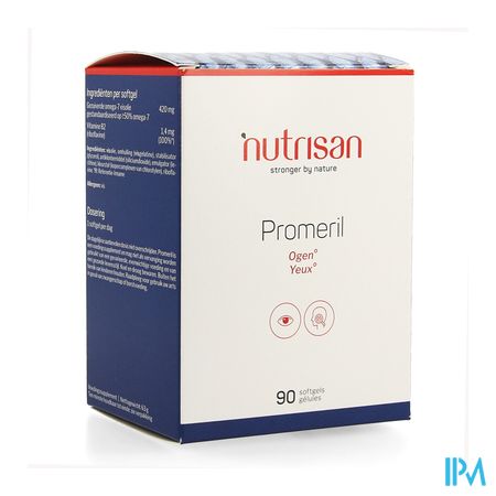Promeril 90 Softgels Nutrisan is een voedingssupplement, verkrijgbaar in uw buurtapotheek of online apotheek. Neem niet meer dan de aanbevolen dagelijkse dosis vermeld op de verpakking. Het vervangt geen gezonde levensstijl en gevarieerde en evenwichtige voeding. Vraag raad aan uw apotheker. Het product altijd buiten het bereik van kinderen houden.