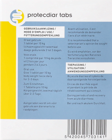 U geeft Protecdiar 2 x daags gedurende 2 tot 3 dagen. Het advies is om voor gebruik een dierenarts te raadplegen.