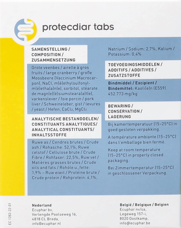 Samenstelling: Grote veenbes, NaCl, MSM, sorbitol, magnesiumstearaat, varkenslever, gist, CaCl2, MgCl2, Kaolien.