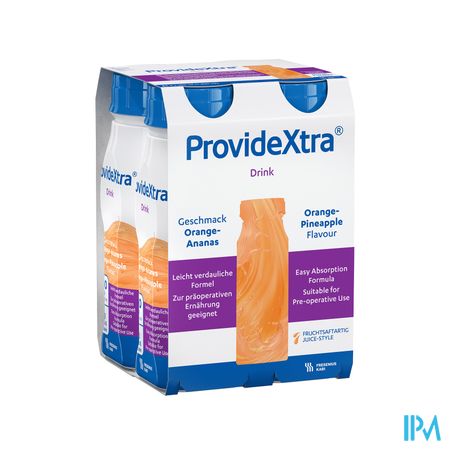 Providextra Drink 200ml Ananasorange/ananassinaas is een voedingssupplement, verkrijgbaar in uw buurtapotheek of online apotheek. Neem niet meer dan de aanbevolen dagelijkse dosis vermeld op de verpakking. Het vervangt geen gezonde levensstijl en gevarieerde en evenwichtige voeding. Vraag raad aan uw apotheker. Het product altijd buiten het bereik van kinderen houden.