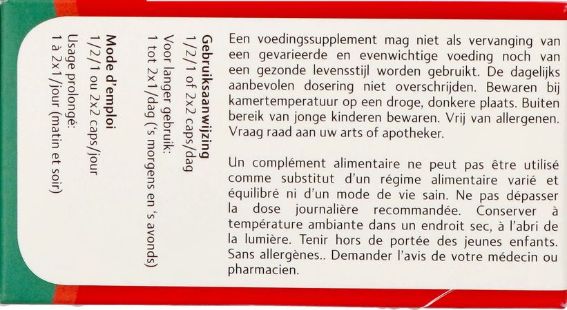 Optimale werking: 10 min. vóór het eten met een glas plat water. Bij een gevoelige maag of oprispingen is het beter de capsules tijdens de maaltijd in te nemen.