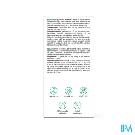 Purasana Valeriaan Caps 70 is een voedingssupplement, verkrijgbaar in uw buurtapotheek of online apotheek. Neem niet meer dan de aanbevolen dagelijkse dosis vermeld op de verpakking. Het vervangt geen gezonde levensstijl en gevarieerde en evenwichtige voeding. Vraag raad aan uw apotheker. Het product altijd buiten het bereik van kinderen houden.