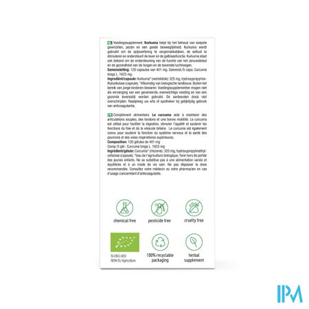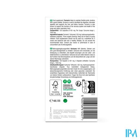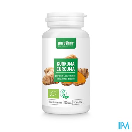 Purasana Kurkuma Bio Caps 120 is een voedingssupplement, verkrijgbaar in uw buurtapotheek of online apotheek. Neem niet meer dan de aanbevolen dagelijkse dosis vermeld op de verpakking. Het vervangt geen gezonde levensstijl en gevarieerde en evenwichtige voeding. Vraag raad aan uw apotheker. Het product altijd buiten het bereik van kinderen houden.