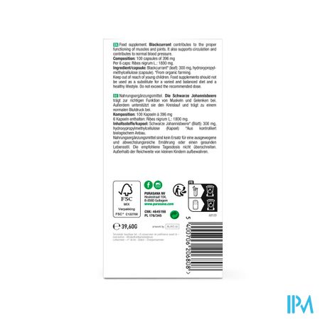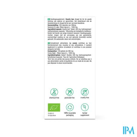 Zwarte bes* (blad): 300 mg, hydroxypropylmethylcellulose (capsule). *Afkomstig van biologische landbouw.
