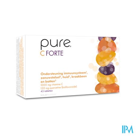 Pure C Forte Tabl 45 is een voedingssupplement, verkrijgbaar in uw buurtapotheek of online apotheek. Neem niet meer dan de aanbevolen dagelijkse dosis vermeld op de verpakking. Het vervangt geen gezonde levensstijl en gevarieerde en evenwichtige voeding. Vraag raad aan uw apotheker. Het product altijd buiten het bereik van kinderen houden.