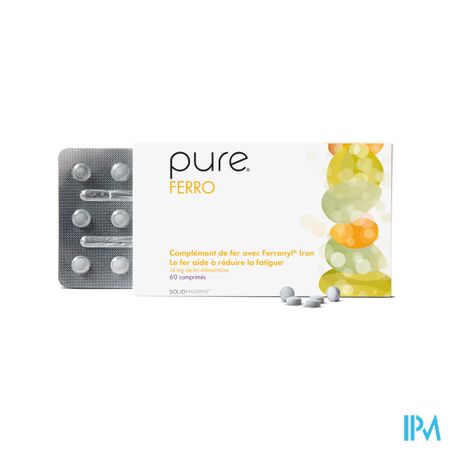 Pure Ferro Tabl 60 is een voedingssupplement, verkrijgbaar in uw buurtapotheek of online apotheek. Neem niet meer dan de aanbevolen dagelijkse dosis vermeld op de verpakking. Het vervangt geen gezonde levensstijl en gevarieerde en evenwichtige voeding. Vraag raad aan uw apotheker. Het product altijd buiten het bereik van kinderen houden.