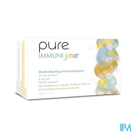 Pure Immuni Junior 30 is een voedingssupplement, verkrijgbaar in uw buurtapotheek of online apotheek. Neem niet meer dan de aanbevolen dagelijkse dosis vermeld op de verpakking. Het vervangt geen gezonde levensstijl en gevarieerde en evenwichtige voeding. Vraag raad aan uw apotheker. Het product altijd buiten het bereik van kinderen houden.