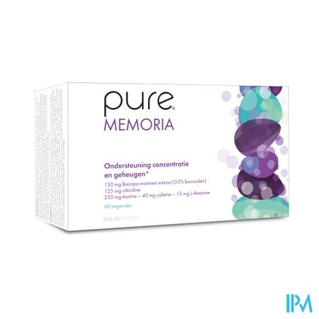 Pure Memoria is opgebouwd rond Bacopa monnieri en bevat verscheidene andere stoffen in optimale dosering met een effect op cognitie, zowel op korte als op lange termijn: op die manier verkrijgt men een veilig en synergetisch product. Zo wordt de zuivere cafeïne bijvoorbeeld gecombineerd met taurine en L-theanine (als tegenwicht). Rust, ontspanning, focus en concentratie: de ideale intellectuele mindset dus.