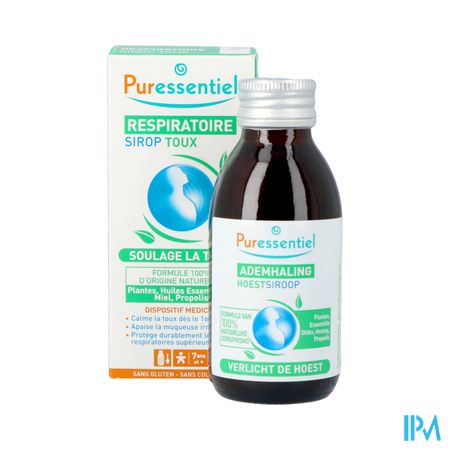 Puressentiel Ademhaling Hoestsiroop 125ml is een voedingssupplement, verkrijgbaar in uw buurtapotheek of online apotheek. Neem niet meer dan de aanbevolen dagelijkse dosis vermeld op de verpakking. Het vervangt geen gezonde levensstijl en gevarieerde en evenwichtige voeding. Vraag raad aan uw apotheker. Het product altijd buiten het bereik van kinderen houden.