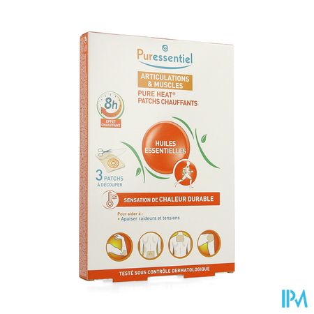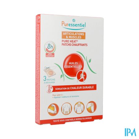 Een verwarmende kleefpatch die helpt om te ontspannen en gevoelige zones en spanningen in de spieren verlicht. Het product op basis van actieve stoffen die 100% natuurlijk zijn, bevat 14 essentiële oliën (Cajeputi, roomse Kamille, Kruidnagel, Eucalyptus, Gaultheria procumbens, Jeneverbes, Lavandin, Marjolein, Pepermunt, Niaouli, Muskaatnoot, Den, Rozemarijn, Terpentijn) en Capsicum. Gedurende meer dan 8 uur bezorgt het een aangenaam gevoel van warmte waardoor spieren ontspannen. De soepele patch volgt elke beweging. Hij is geurloos, comfortabel, aanpasbaar en kan in de gewenste afmetingen geknipt en direct op de gevoelige lichaamsplek aangebracht worden: rug, knie, nek, schouder, elleboog, pols, dij, kuit,… Verwarmende patches onder dermatologisch toezicht getest: Een gebruikstest* onder dermatologisch toezicht (20 vrijwilligers) met de Puressentiel® Verwarmende Patches met 14 essentiële oliën heeft aangetoond dat ze zeer goed door de huid verdragen worden, dat het verwarmend effect meestal na 15 minuten tot 2 uur optreedt met een verlengd verwarmend effect gedurende meer dan 8 uur en dat de kwaliteit van dit effect als aangenaam tot zeer aangenaam ervaren wordt.